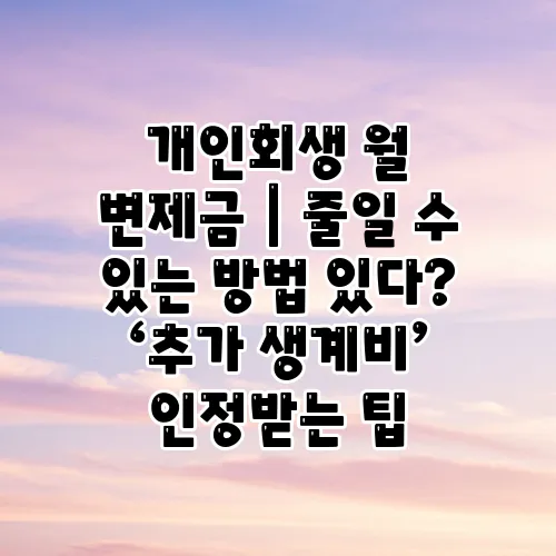 변제금 줄이는 방법, 그리고 추가 생계비 인정받기 위한 팁들, 이러한 정보들이 여러분에게 도움이 되길 바랍니다. 여러분의 재정적 안정을 위해 항상 최선을 다하시길 바랍니다!