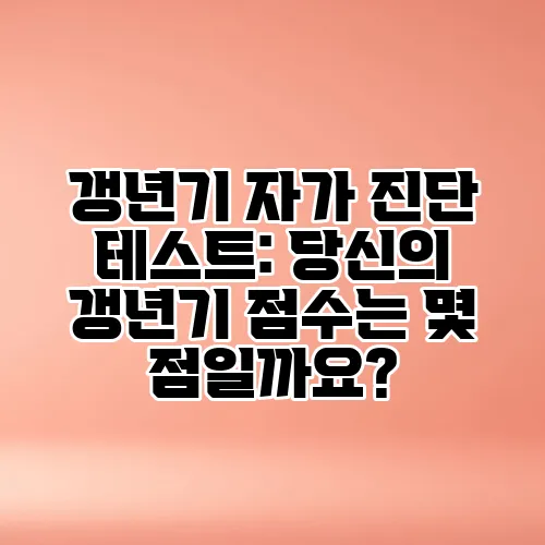 갱년기 자가 진단 테스트는 자신에게 맞는 관리 방법을 찾는데 중요한 첫걸음입니다.