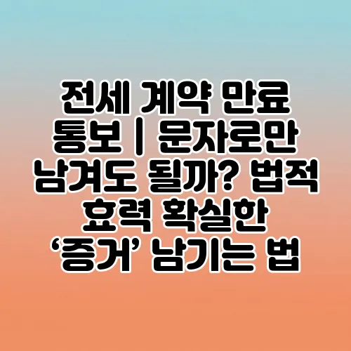 전세 계약 만료 통보, 즉 계약 종료 통보는 중요한 법적 절차입니다. 문자 메시지로만 간단히 남길 수 있지만, 이를 뒷받침할 수 있는 충분한 증거를 갖추는 것이 필요합니다. 법적 효력을 갖춘 증거 마련을 통해 불필요한 분쟁을 예방할 수 있습니다. 결론적으로, 여러분은 전세 계약과 관련하여 모든 사항을 철저히 준비하고 기록하여 안전하게 진행하시기를 바랍니다.