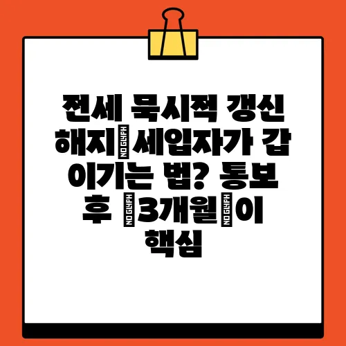 [전세 묵시적 갱신], [전세 해지 통보], 그리고 [임대차 계약]: 이러한 요소들은 모두 세입자의 권리 보호와 깊은 관련이 있습니다. 우리는 항상 자신의 권리를 이해하고 적극적으로 대처해야 합니다.