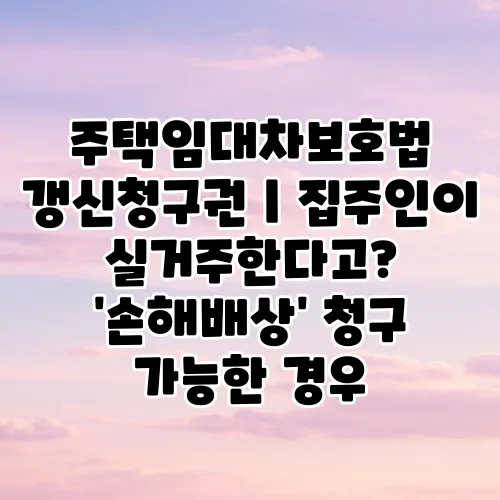 안녕하세요! 오늘은 주택임대차보호법의 갱신청구권과 관련된 여러 가지 이슈를 살펴보겠습니다. 특히 집주인이 실거주를 이유로 한 손해배상 청구 가능성에 대해 알아보려고 합니다. 주택임대차보호법은 임대인과 임차인 간의 권리와 의무를 정리하는 중요한 법이죠. 이러한 법적 지식을 갖추는 것은 매우 중요합니다. 그럼 함께 살펴볼까요?