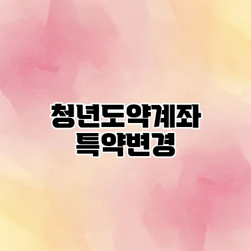 [요약]: 청년도약계좌는 청년들에게 큰 도움이 되는 금융 상품입니다. 특약변경을 통해 더 나은 조건으로 이용할 수 있으며, 이를 통해 성공적인 저축 생활이 가능합니다.