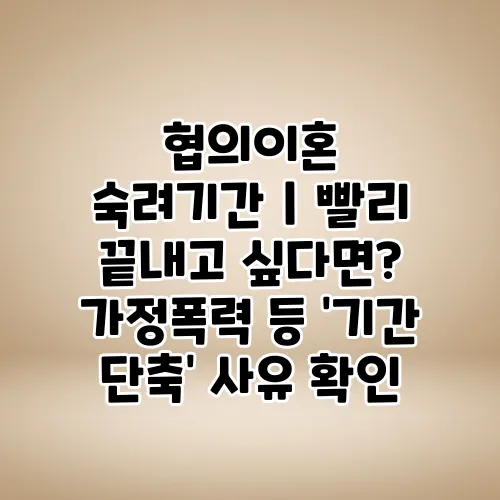 숙려기간 단축은 특정 조건을 충족했을 때 가능합니다. 예를 들어, 가정폭력, 중대한 사유 등이 있을 경우 법원에 요청하여 단축할 수 있습니다.